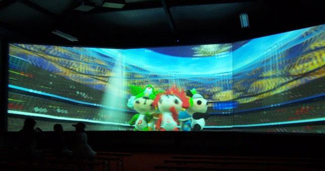 由多塊銀幕組成,通過多臺投影機,采用投影融合技術(shù),創(chuàng)造出超大無縫的逼真畫面。利用電影自身特有的技術(shù)優(yōu)勢,使觀眾在高質(zhì)量的聲畫環(huán)境包圍之中,產(chǎn)生身臨其境的強烈的現(xiàn)場 ……